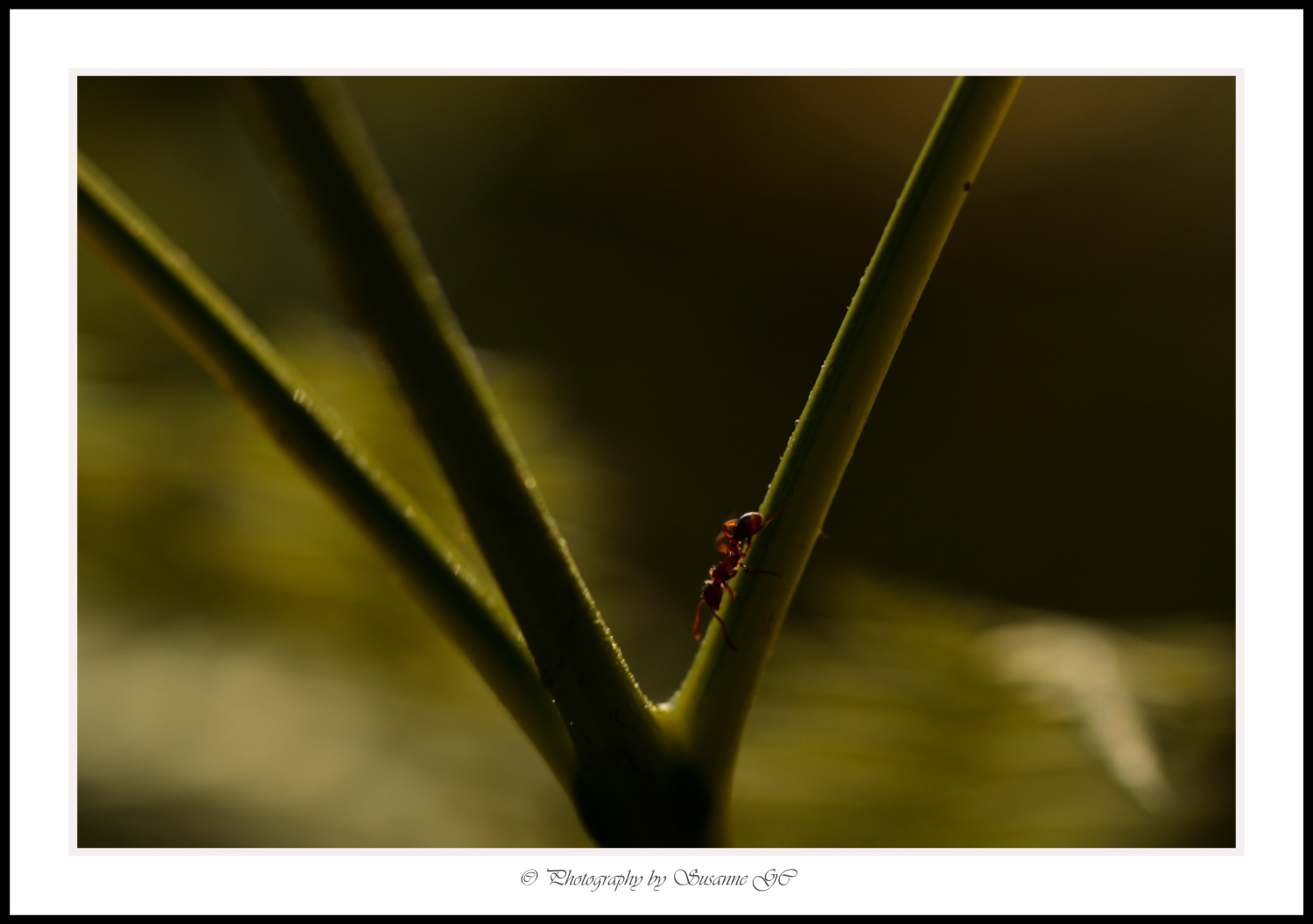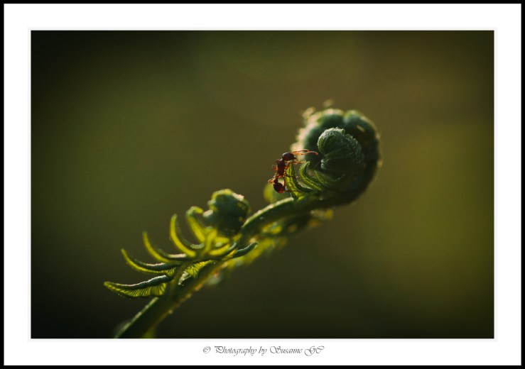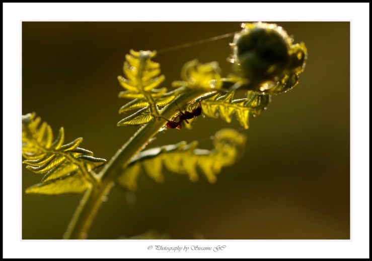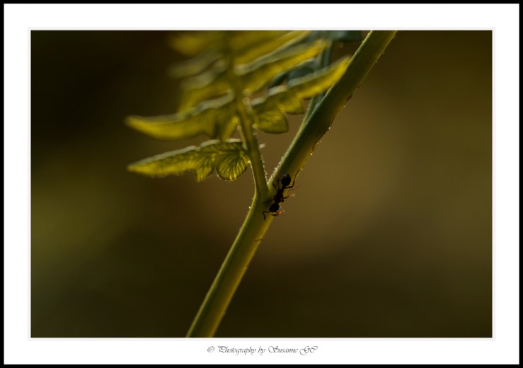 Att följa den lilla myrans framfart på grenar som vajar i vinden… Det är en ära, en oerhörd tjusning OCH en väldans utmaning.
