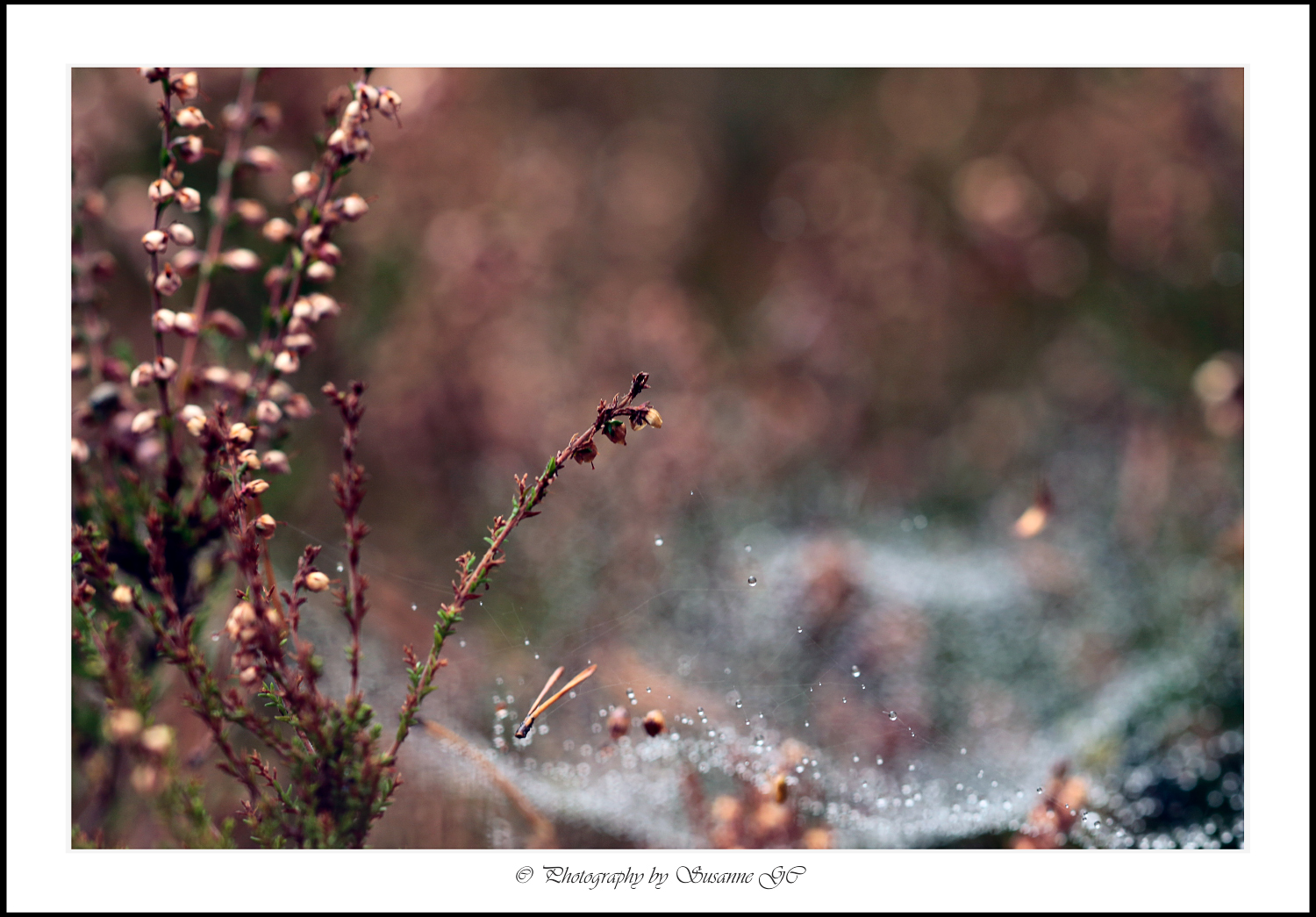 Att det senaste vädret varit aningens blött fanns det bevis för på många sätt… Daggvåta spindelnät fyllda av små pärlor vart man än riktade sin blick. Spännande att fota ”rakt av” och tacksamma att ha som bakgrund till andra objekt.