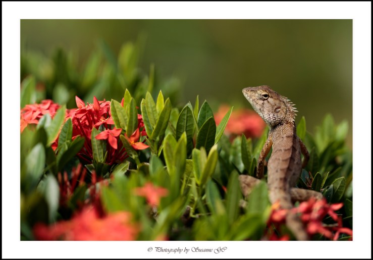 En oas fylld av små vattenfall, spännande växter, ljuvliga blommor, vackra fåglar, nyfikna ödlor och kväkande grodor. Där hängde vi när vädret ville oss väl och rastlösheten på solbädden gjorde mig smått galen 😉