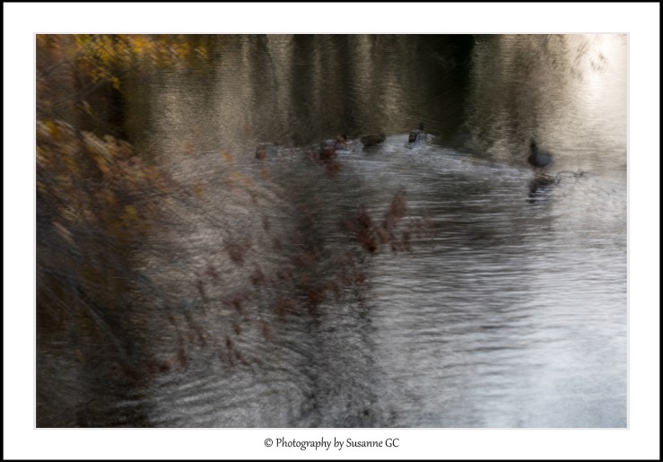 Genom långa slutartider målade jag av parken på mitt sätt. Speglingarna i vattnet och det sista av dagens ljus togs till vara på olika sätt. Dom murriga och dova färgerna gav bilderna en varm och skön känsla.