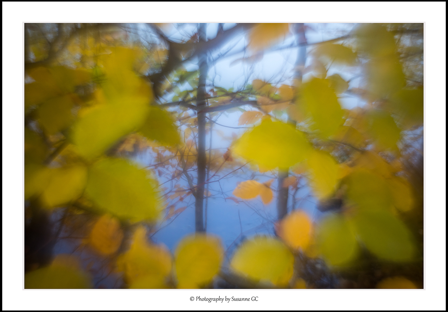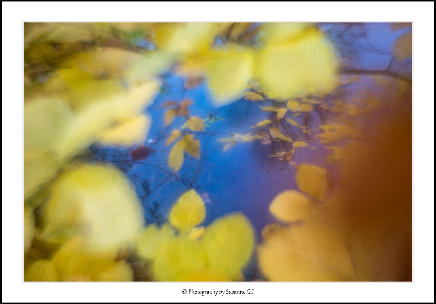 Genom den vackra parken rinner Säveån. Ett vackert vattendrag, perfekt att använda vid lite fotolek. Som i bilderna ovan där jag fotat genom grenar, ner i vattnet, där buskarnas och dom små trädens grenar speglade sig och gav spännande bilder.