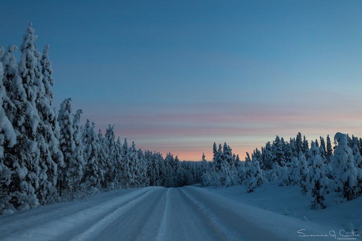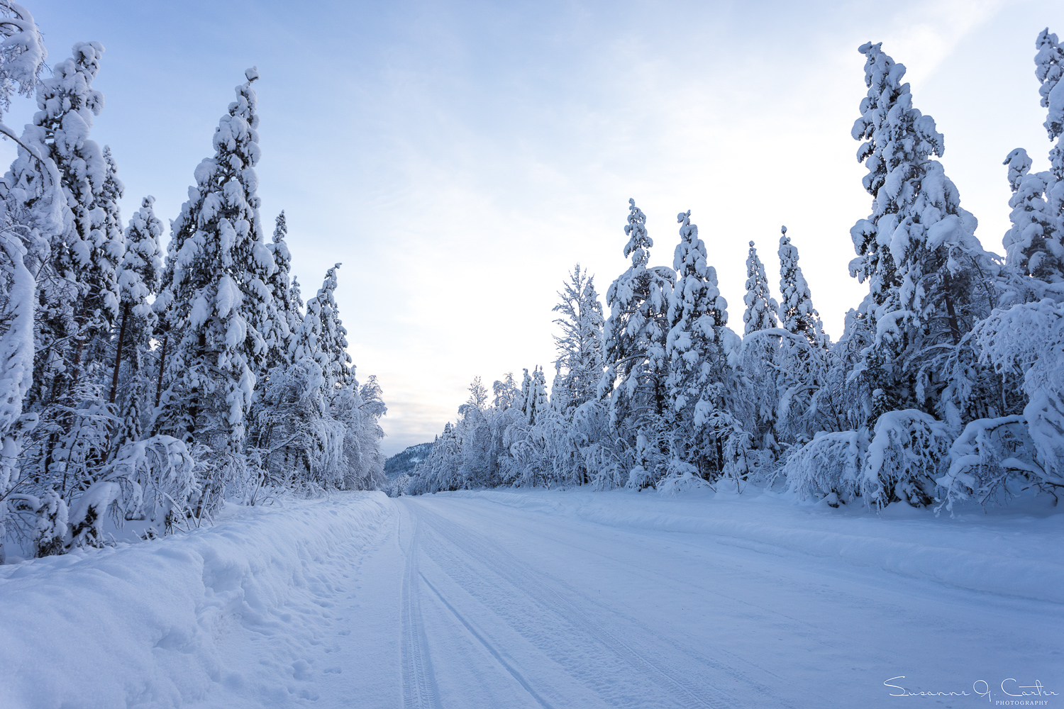 Vår första runda var i början på veckan när vi spanade efter den perfekta platsen att besöka på kvällen/natten för att fota norrsken. Andra gången tog vi oss ut efter att ha tillbringat förmiddagen i skidbacken och vi ville ta vara på den vackra vinterdagen och solens nedgång.