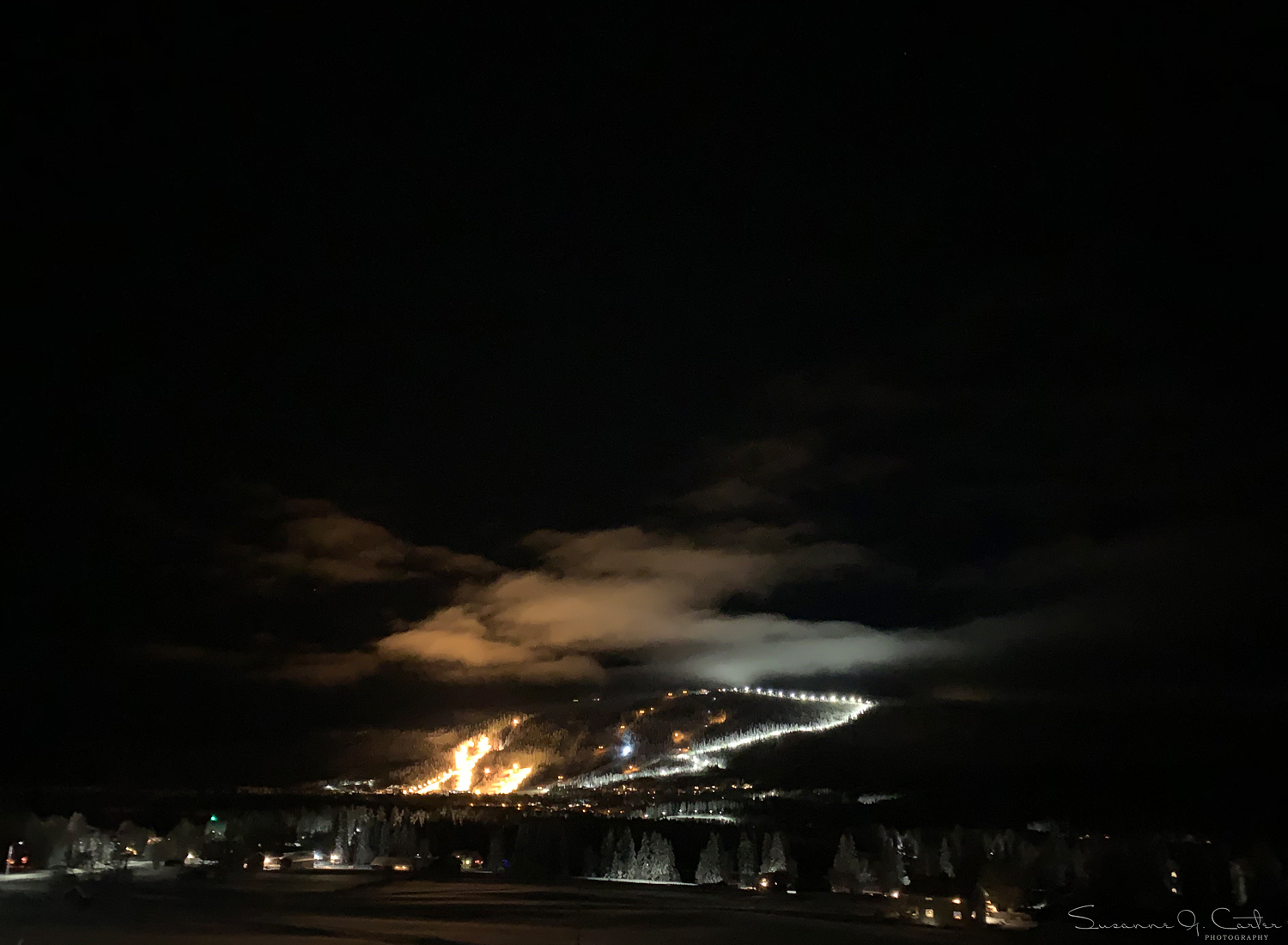 Men ljusskenet var allt för vitt och statiskt… Pistmaskinerna hade parkerat och tagit paus och lyste upp himlen men det var inte riktigt det vi hade som mål den där kvällen, även om det var vackert.
