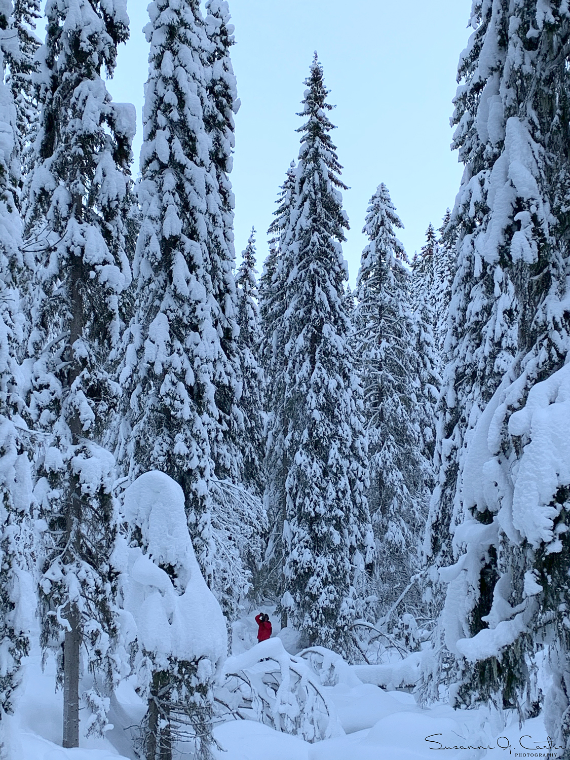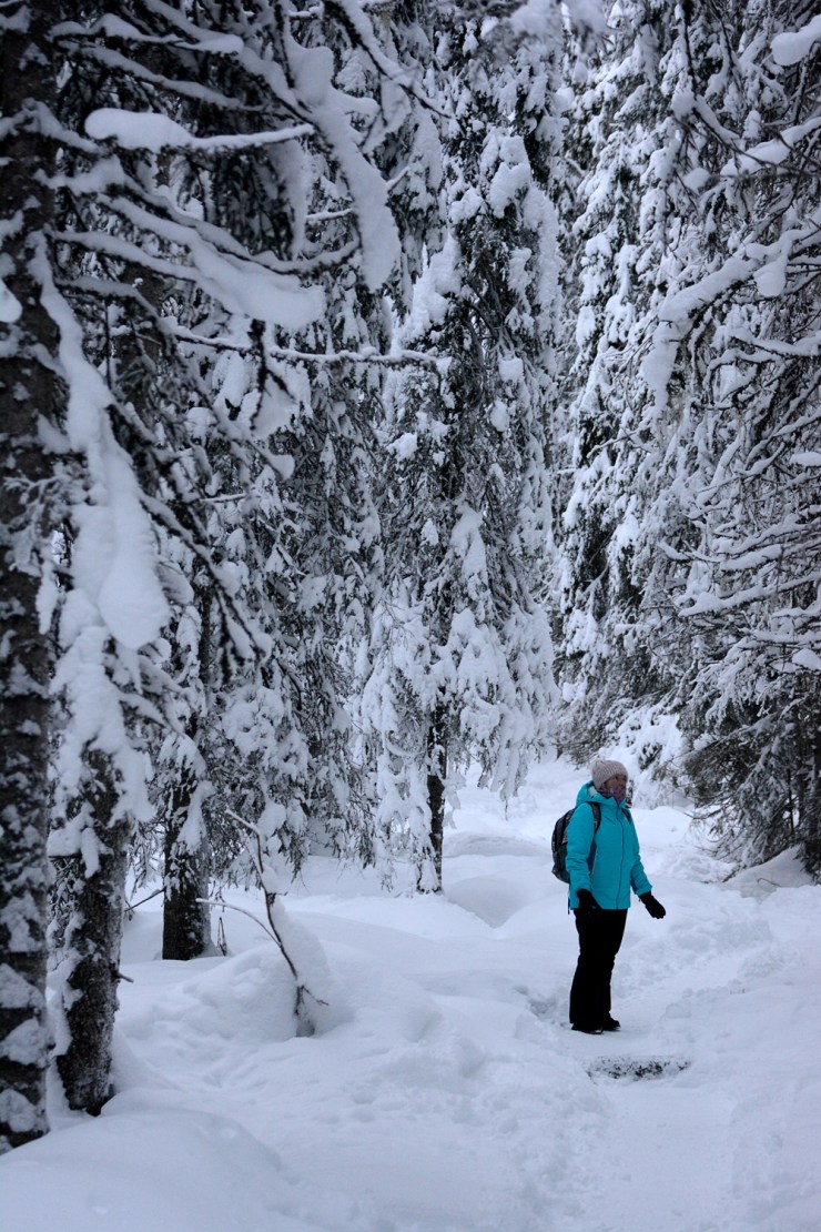 I skogen rådde det en absolut tystnad. Det var bara knarret från våra kängor som hördes. Stigen dit är delvis kuperad och inte alltid den enklaste att gå på men just då…  Ja, då kändes den naturligt vadderade rumpan plötsligt bra att ha… 🙂 🙂