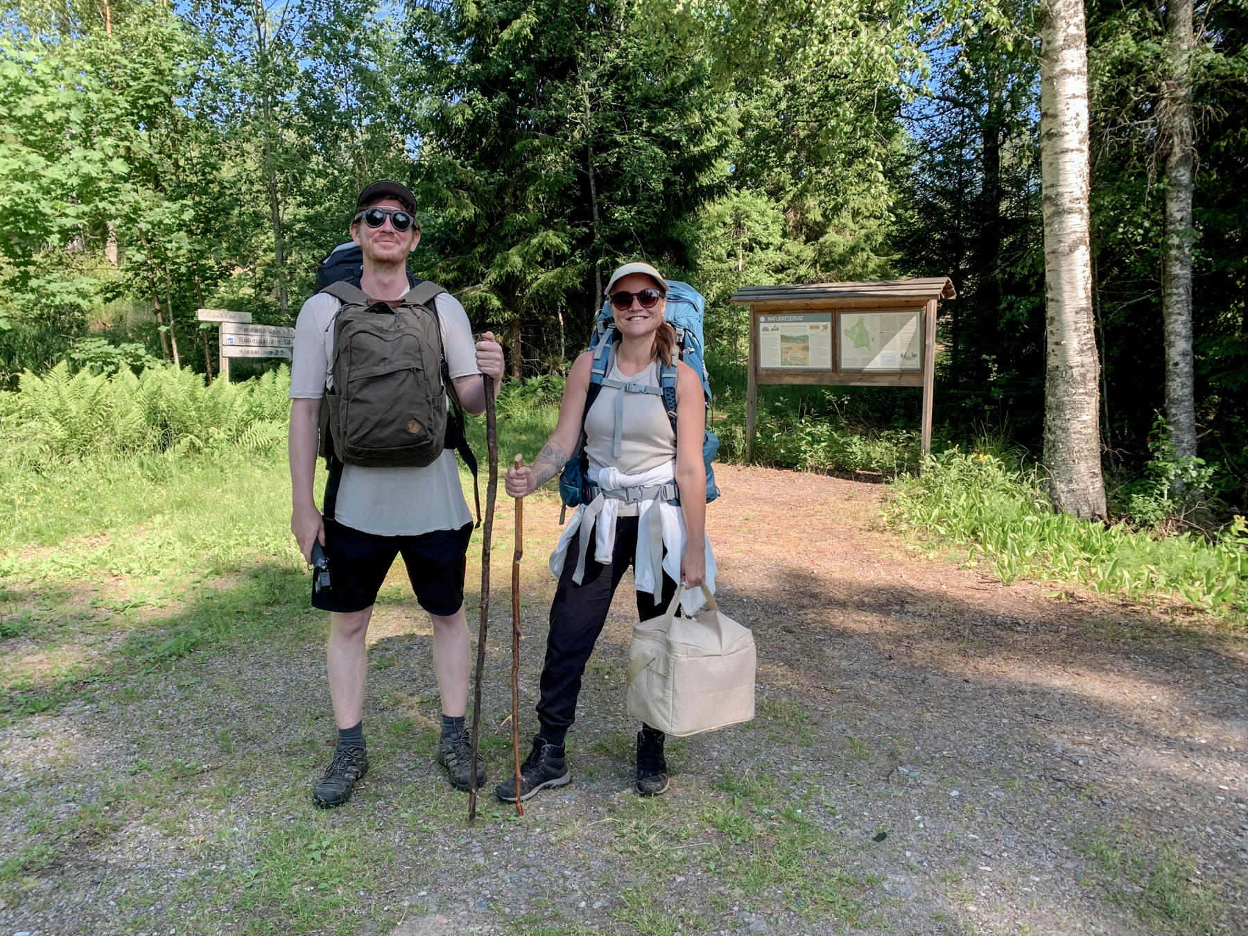 Tidig morgon gav vi oss av med all vår tunga och på tok för stora packning. Flera gånger när vi gick där skämtade vi om det och när man nu ser tillbaka på bilderna så ser det ut som att vi skulle vara borta en månad! och inte en natt 🙂 🙂 🙂