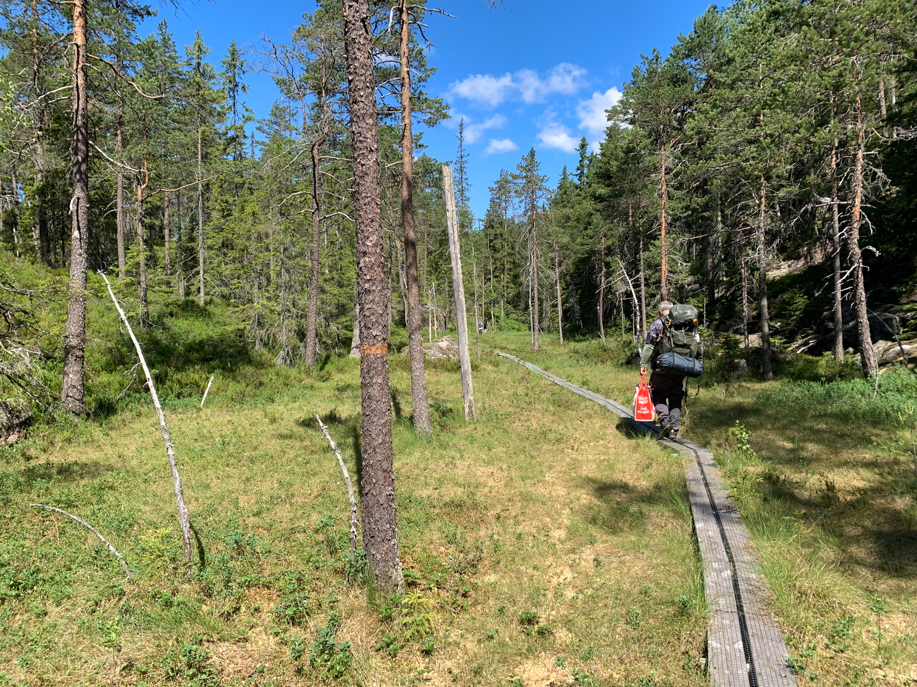 Att vi var inne i den torraste delen av sommaren märktes tydligt när vi gick där i skogen. Även runt spången var det torrt och knastrigt. Vad vi inte visste just där och då var ju att torkan skulle fortsätta några veckor till för att sen…
