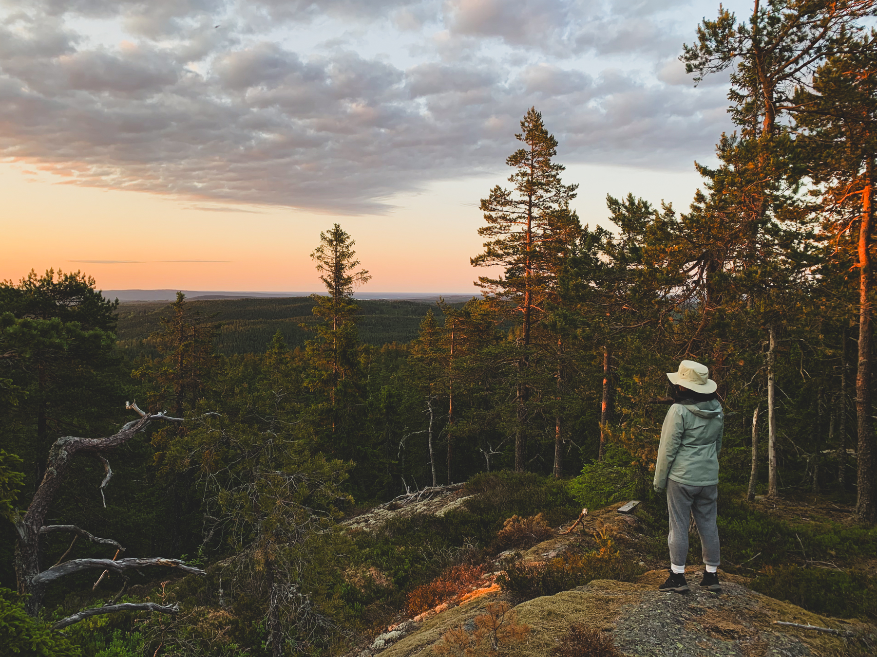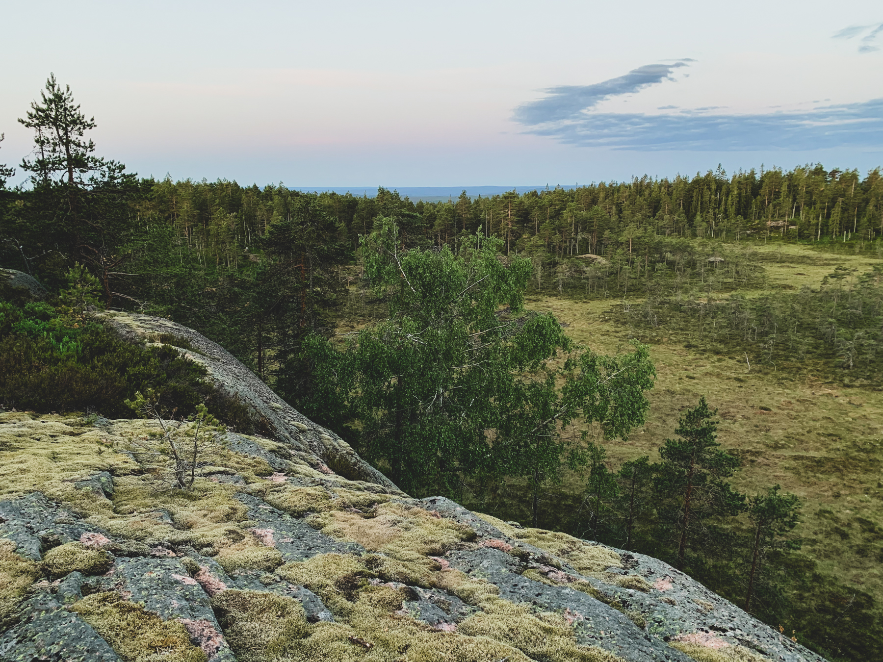 Vi hade dessutom gått miste om det rykande heta kokkaffet på stenhällen, med den fantastiska utsikten, färgerna som soluppgången bar med sig och alla hungriga knott… Och vem vet… Kanske ett lodjur tassat i vildmarken, över mossen nedanför stenhällen, som vi skulle missat om vi inte valt att gå upp…