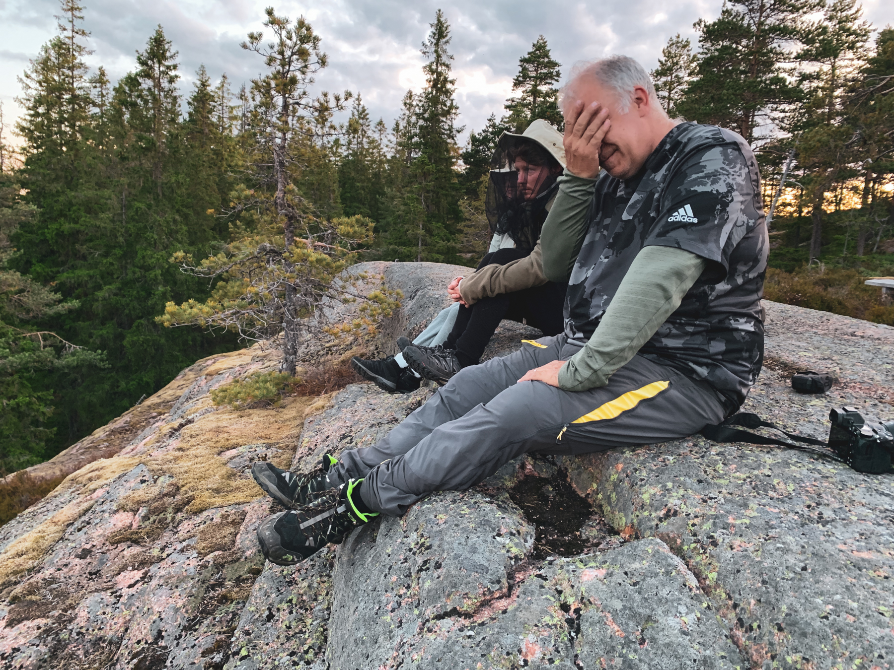 Kan säga att så mycket sömn hanns inte med… men vad gör väl det? Naturen är till för att upplevas. Så sagt och gjort. Ett bra tag innan solens uppgång tog vi oss ut ur tältet med kameror och frukosttillbehör. Vi må ha varit trötta, lite slitna och stela men vad vi inte riktigt väntade oss var det enorma knotthavet som gick till attack så snart vi stoppade ut näsan genom tältöppningen. Ouch!!!