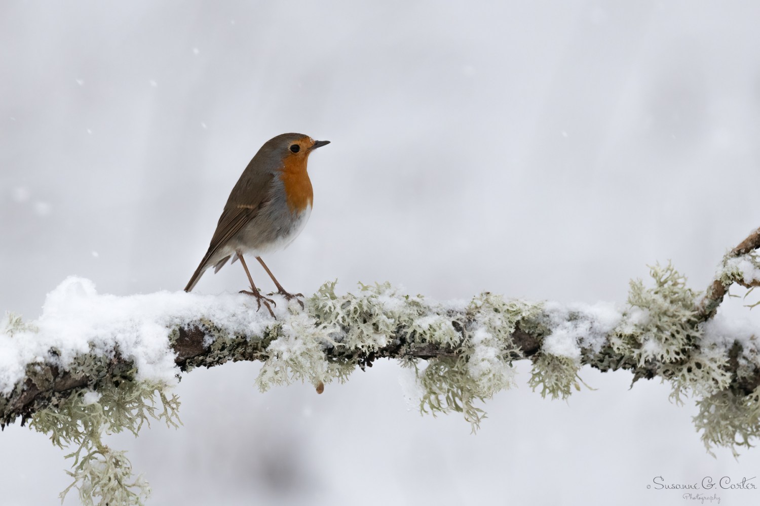 De här bilderna är som de finaste vykort. Kan inte låta bli att tänka på Lars Jonssons fågelmålningar (som jag har matsalen full av, dock inga ”äkta” tavlor). Älskar rödhaken! Den måste verkligen undra varför det kommer snö när det ska vara vår.