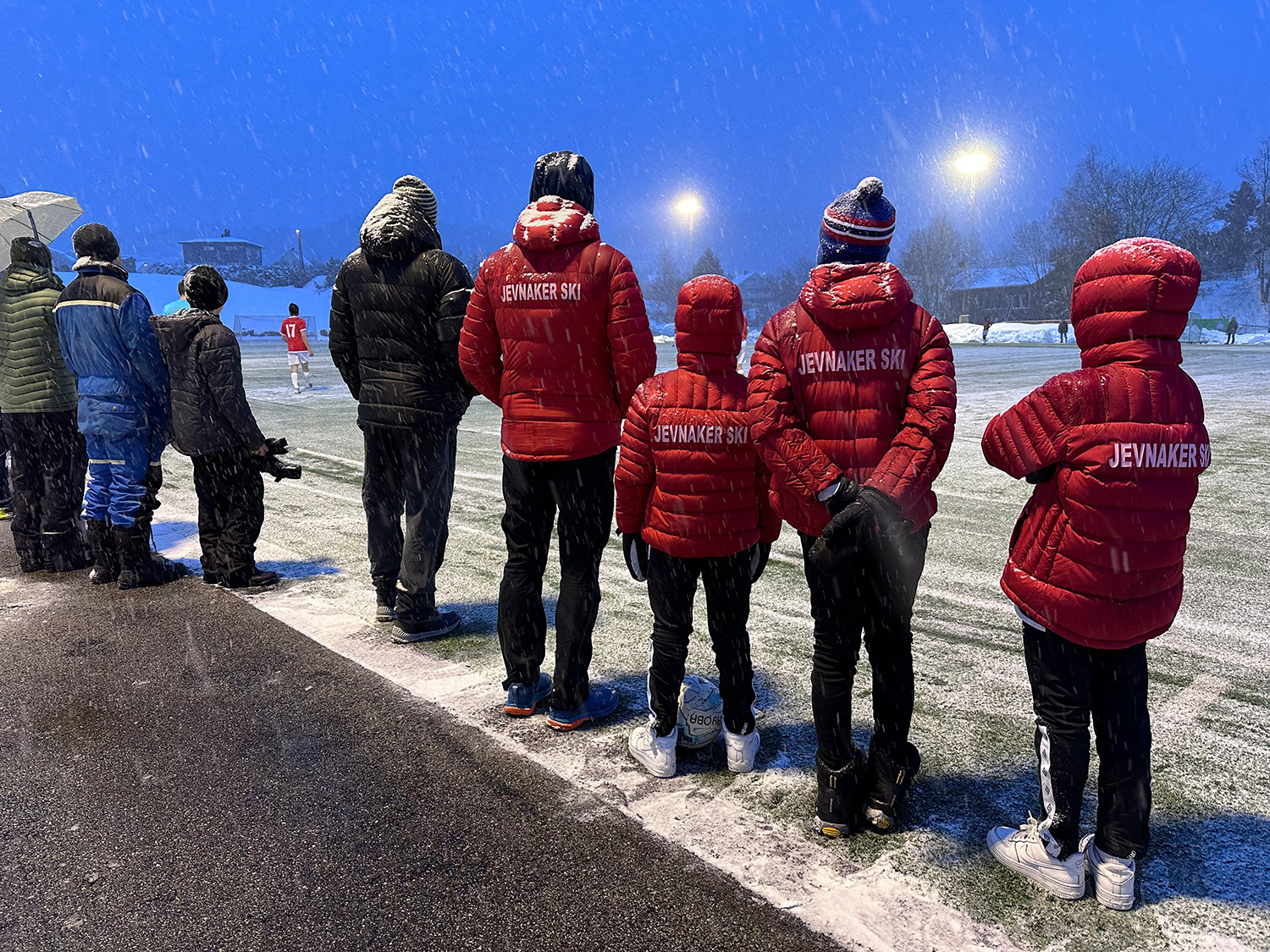 Några timmar senare, när vi stod mitt i snöstormen för att se premiärmatchen Vestfossen – Jevnaker, tittade vi på varandra och blev fulla i skratt. Där stod vi en fredagskväll i vårt grannland Norge, med snö som piskade i ansiktet, för att se en fotbollsmatch…