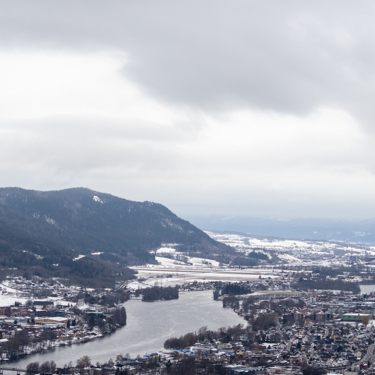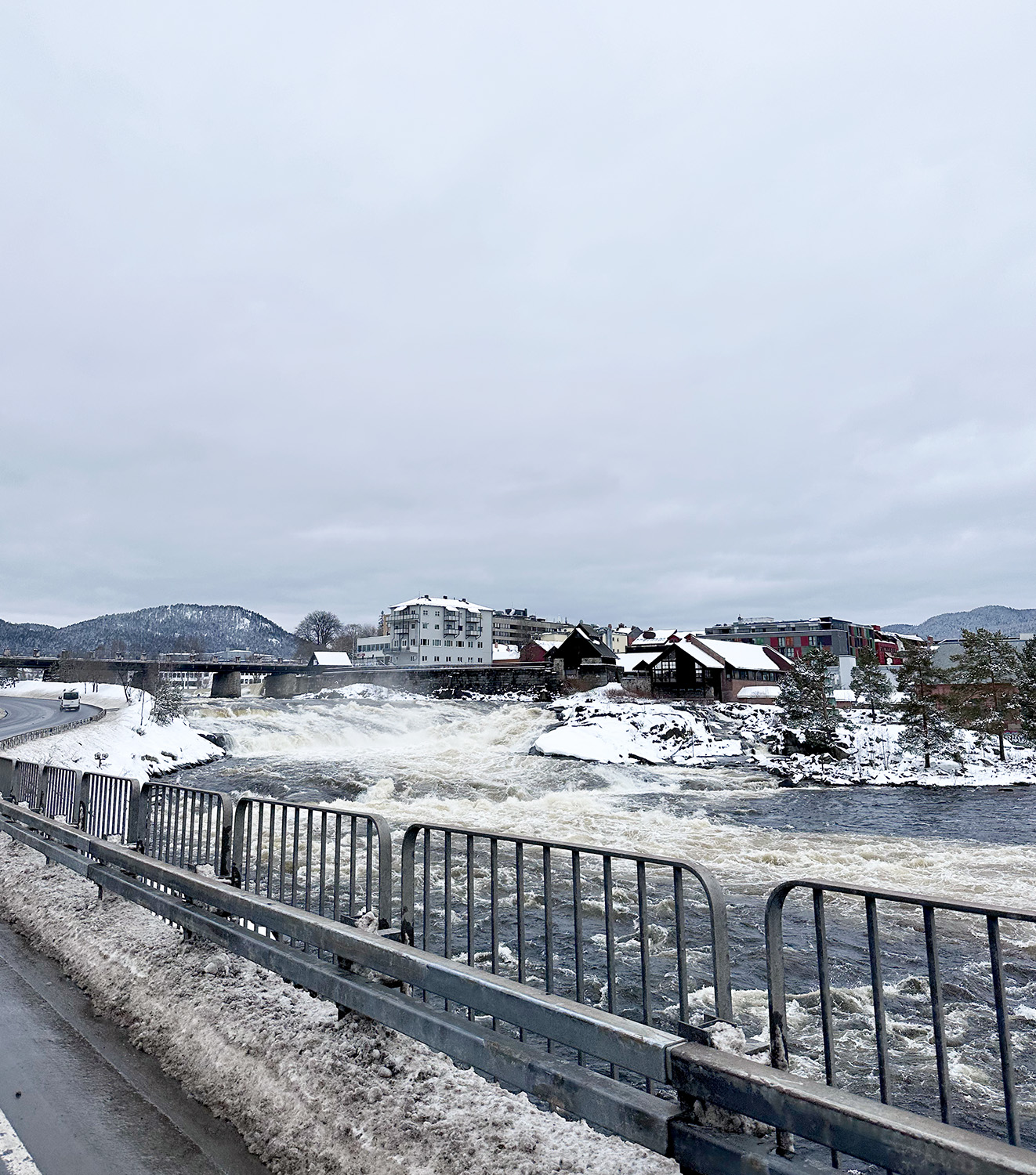Kongsberg är en riktigt fin liten stad. Centrumkärnan känns så mysig, personlig och charmig. Kan tänka mig att det kommer bli ännu vackrare till våren och sommaren när det grönskar fint och dom tomma blomlådorna fyllts med allsköns färgprakt. Planen var att besöka ett berömt litet konditori och kafé i Vestfossen, Sjokolade Salongen, vilket vi också begav oss till först på vår roadtrip. En liten detalj vi missat men som vi upptäckte rätt snart, var att om man vill smaka av deras gottis bör man boka bord… 🤔. Passade ändå på att fotografera ett fascinerande påskägg av choklad som stod placerad vid entrédörren innan vi backade ut och istället åkte vidare till Vikersundbakken. En backhoppningsanläggning med 7 backar och Nordens enda skidflygningsbacke. Det går att ta sig upp till start genom att stega upp för alla trappor eller ta bilen. Men som ni läste redan i början så hade vi bytt till sommardäck… Och att gå upp på hala trappor kändes inte aktuellt. Det får bli en annan gång. På små kringelikrokvägar genom små byar och längs mörkblått vatten på spegelblanka sjöar, styrde vi bilen mot Drammen. Med en snabbkaffe i magen letade vi reda på Spiralen…
