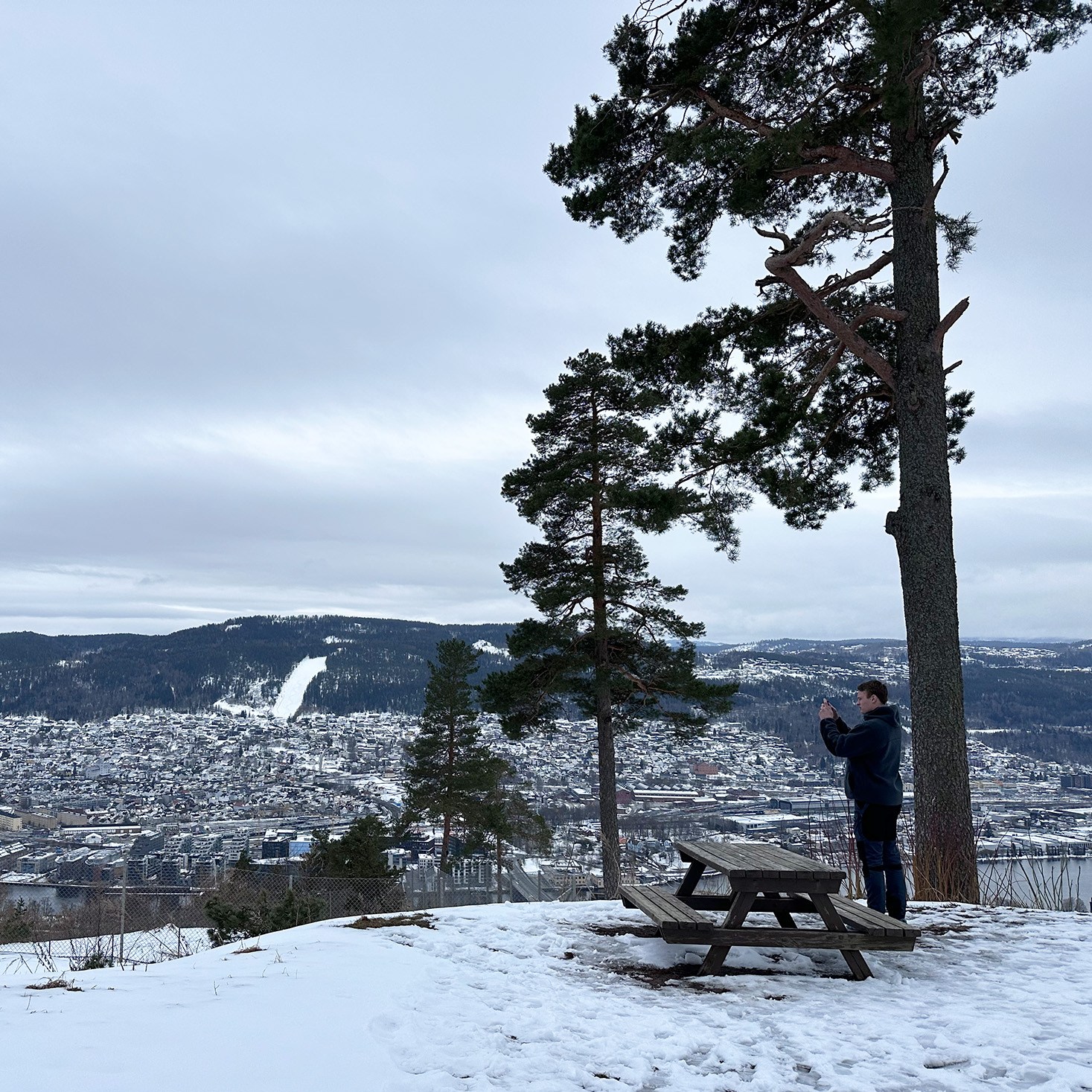 Runt, runt runt åkte vi dom 1650 m upp på toppen och möttes av en fantastisk utsikt över Drammen. Tyvärr lyste solen bakom molnen den här dagen men vad gör väl det egentligen, när sällskapet lyser upp min tillvaro.